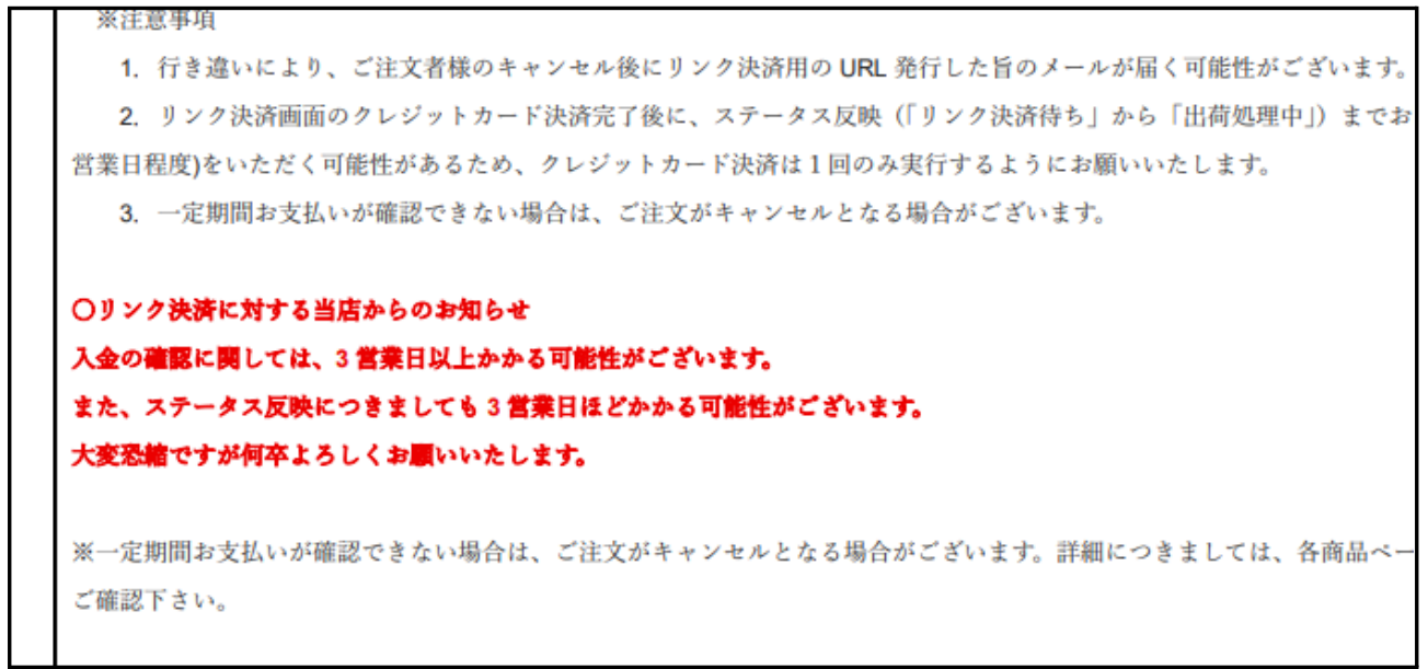 b. 加盟店独自のリンク決済に関する特記事項を「ご注文確認メール」に挿入できます。必要な場合はご記入ください(500文字まで)