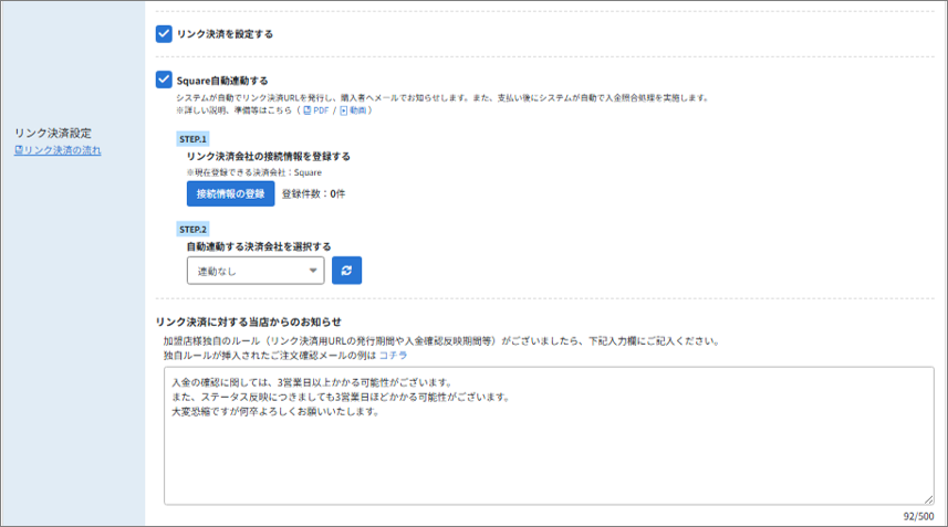 ※リンク決済のご利用には、事前に「Square」などのリンク決済サービス提供事業者との利用契約が必要です。