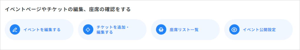 座席リストの登録を行えます。また、作成したチケットの編集などの操作を行えます。