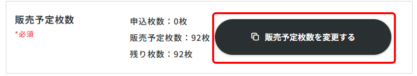 ①「販売予定枚数」の項目に表示されている【販売予定枚数を変更する】ボタンをクリックしてください。