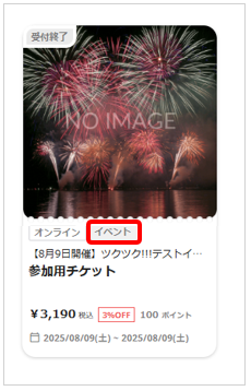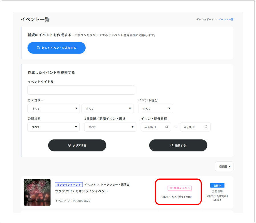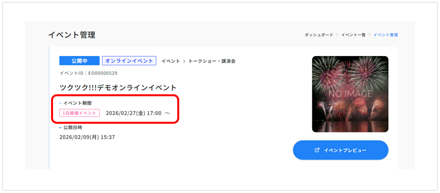 ※ツクツク!!!イベチケサイト上へは、チケット登録時に設定する日程が反映されます。