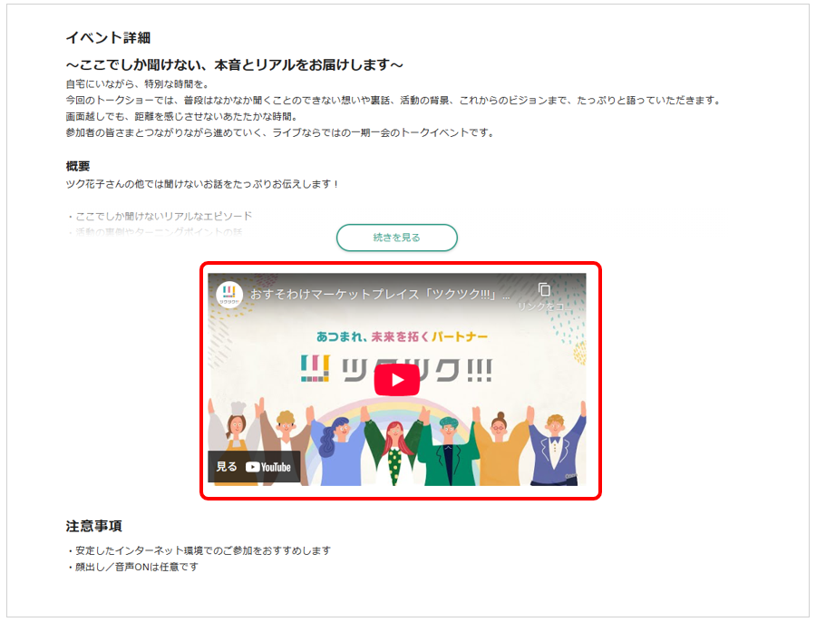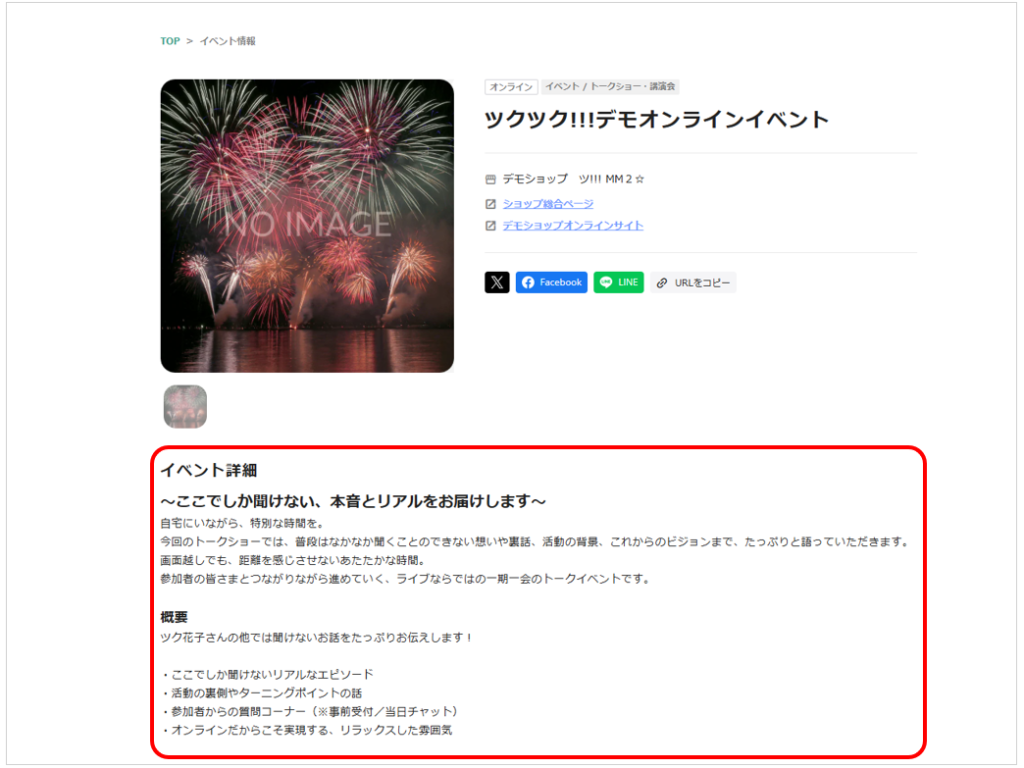 イベントの見どころや、出演者情報などをご自由に設定してください。