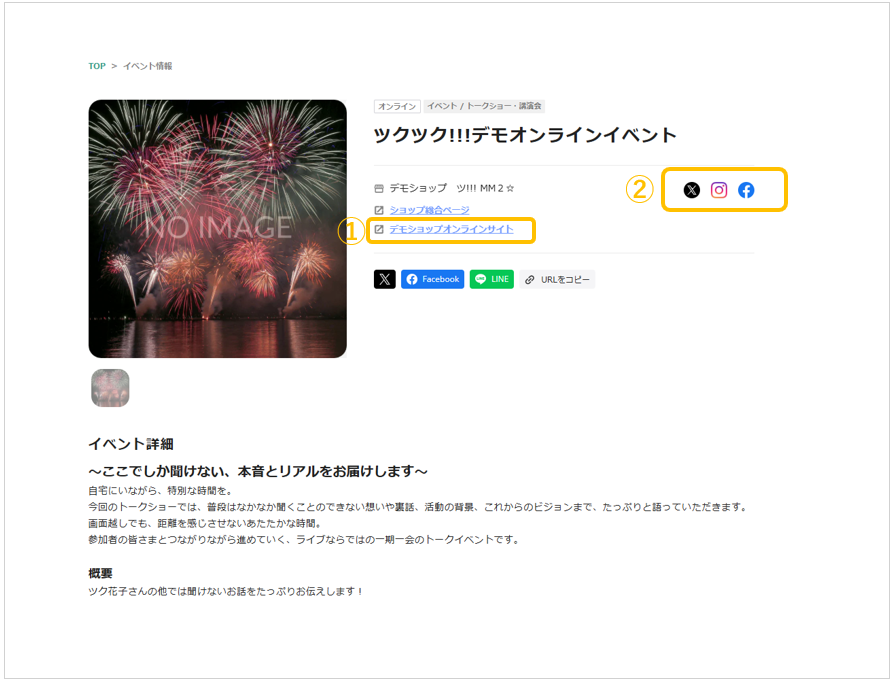 イベントページ内に、オフィシャルサイトのリンクや各SNSのリンクを設置することができます。