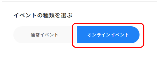 オンライン(ネット上)で開催されるイベントを作成される場合は、「オンラインイベント>をご選択ください。