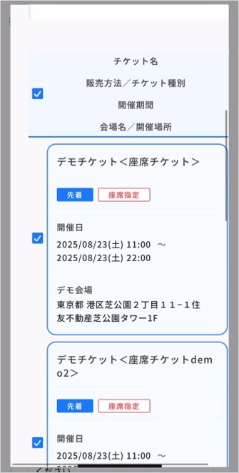 ※選択したチケットのみ、2次元バーコードから来場処理を受付します。