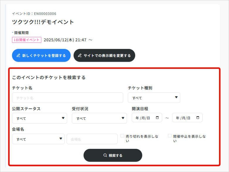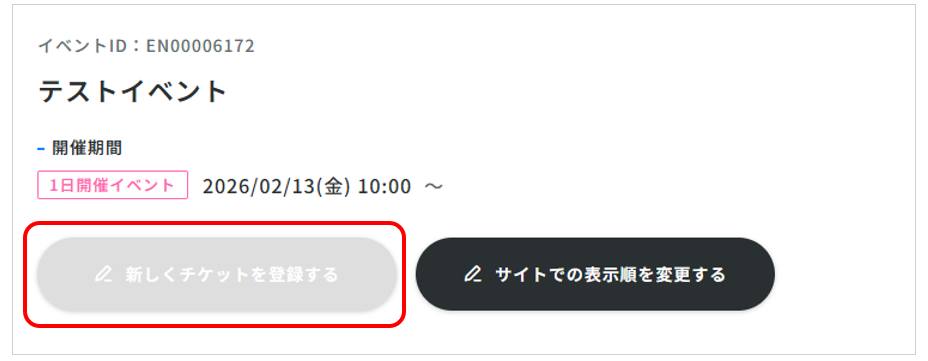 ※チケットをサイト上へ公開させるためには、イベントが公開されている必要があります。