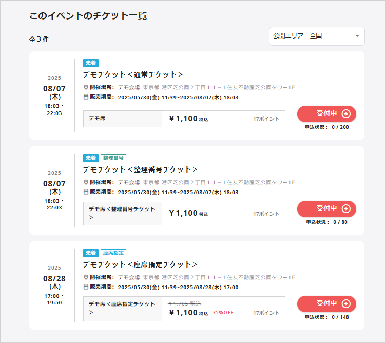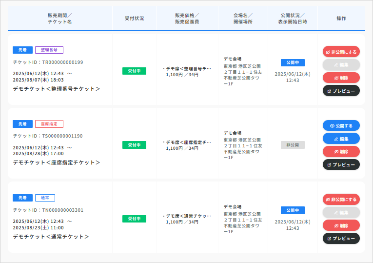 ※イベントが非公開の場合は、イベントが公開されるまでチケットは公開されません。